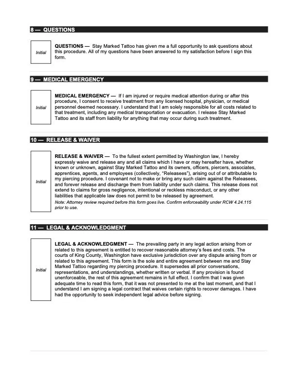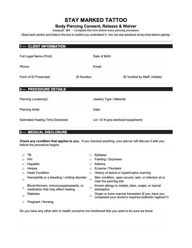 Tattoo waiver